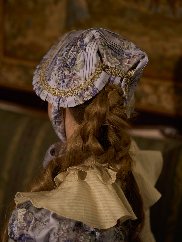 クラシカルブーケのフラワーテキスタイルで仕立てたヒストリカルな雰囲気を纏ったヘッドドレス。