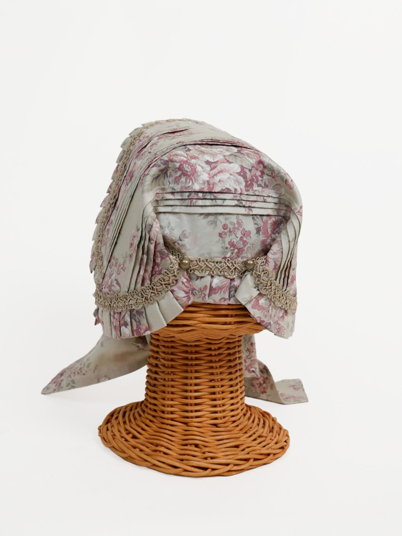 ブリムに施した繊細なフリルやピンタック、アンティークゴールドのオリジナルブレードがアクセントに。