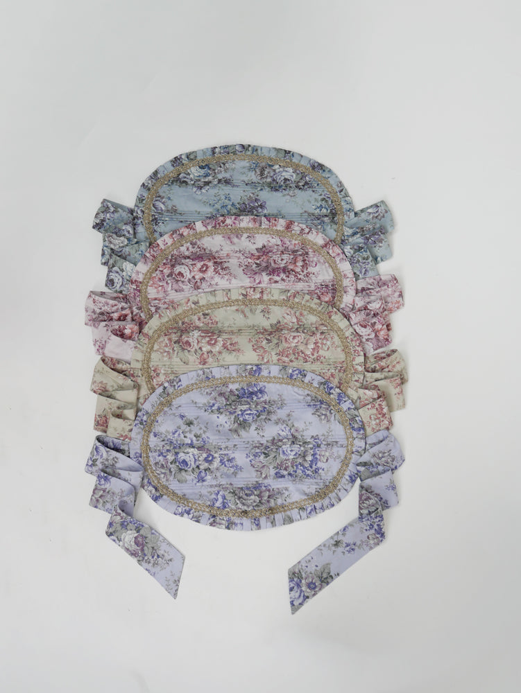 ループにボタンを通していただくとボンネットとして、ボタンを外して半分に畳んでいただくとお顔周りにフィットしたハーフボンネットとしてお召しいただけます。