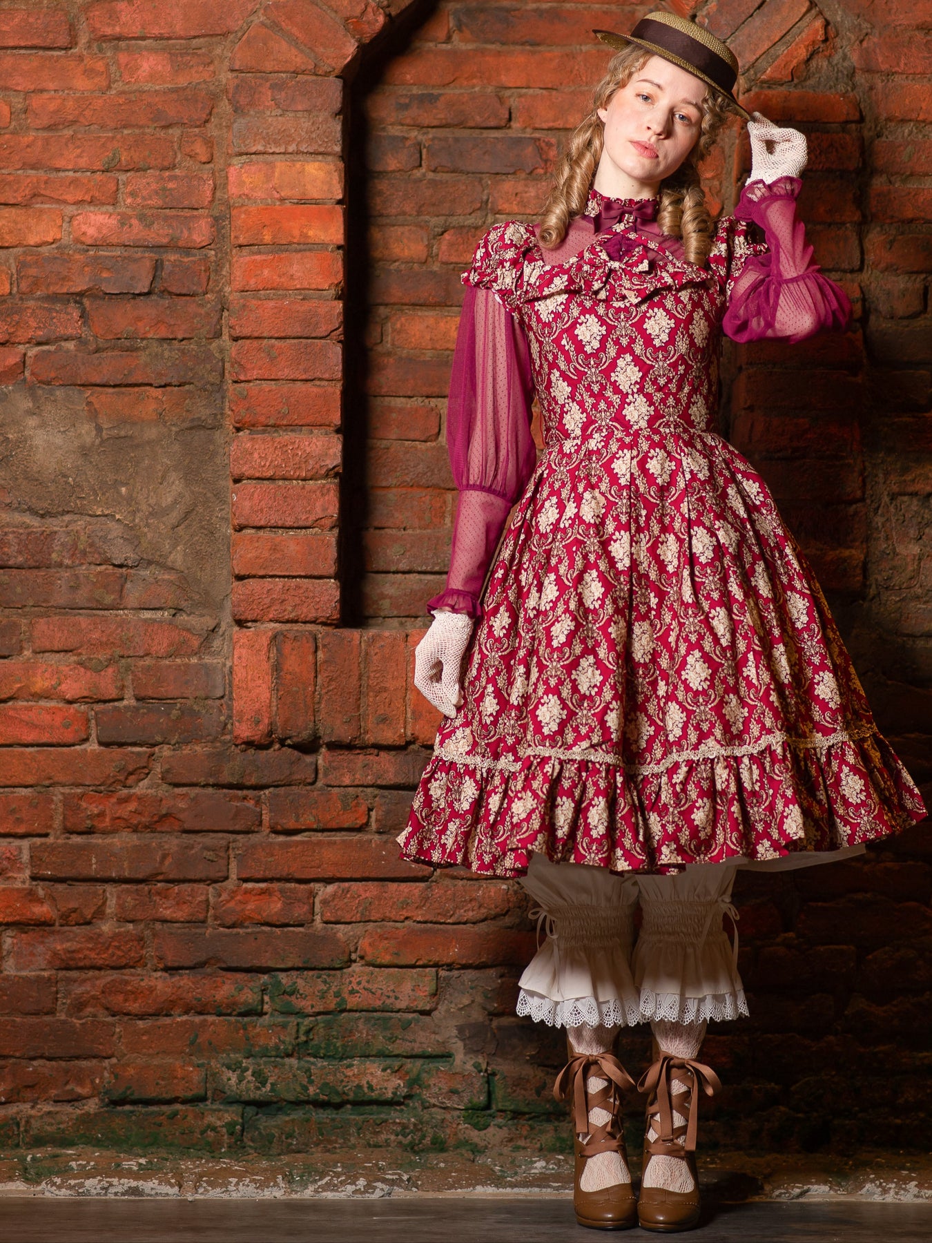 丈感にこだわり、上品さを追求したVictorian maidenならではのデザインで、スカートの裾から覗くリボンも愛らしく、ドールのようなコーディネートをお楽しみいただけます。