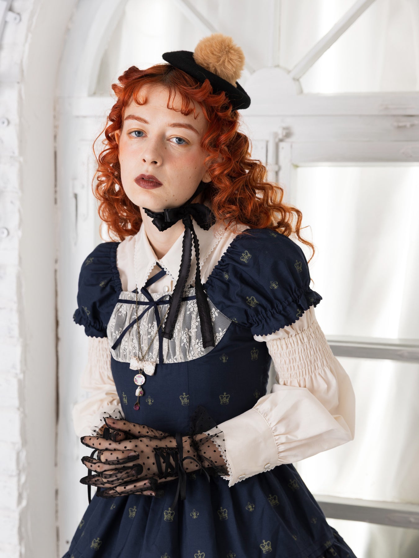 Victorian maidenのためだけに描き下ろされたオリジナルテキスタイル「ロイヤルベアシリーズ」の待望の第2段は、人気のカラーに加えてニューカラーのネイビーが登場です。