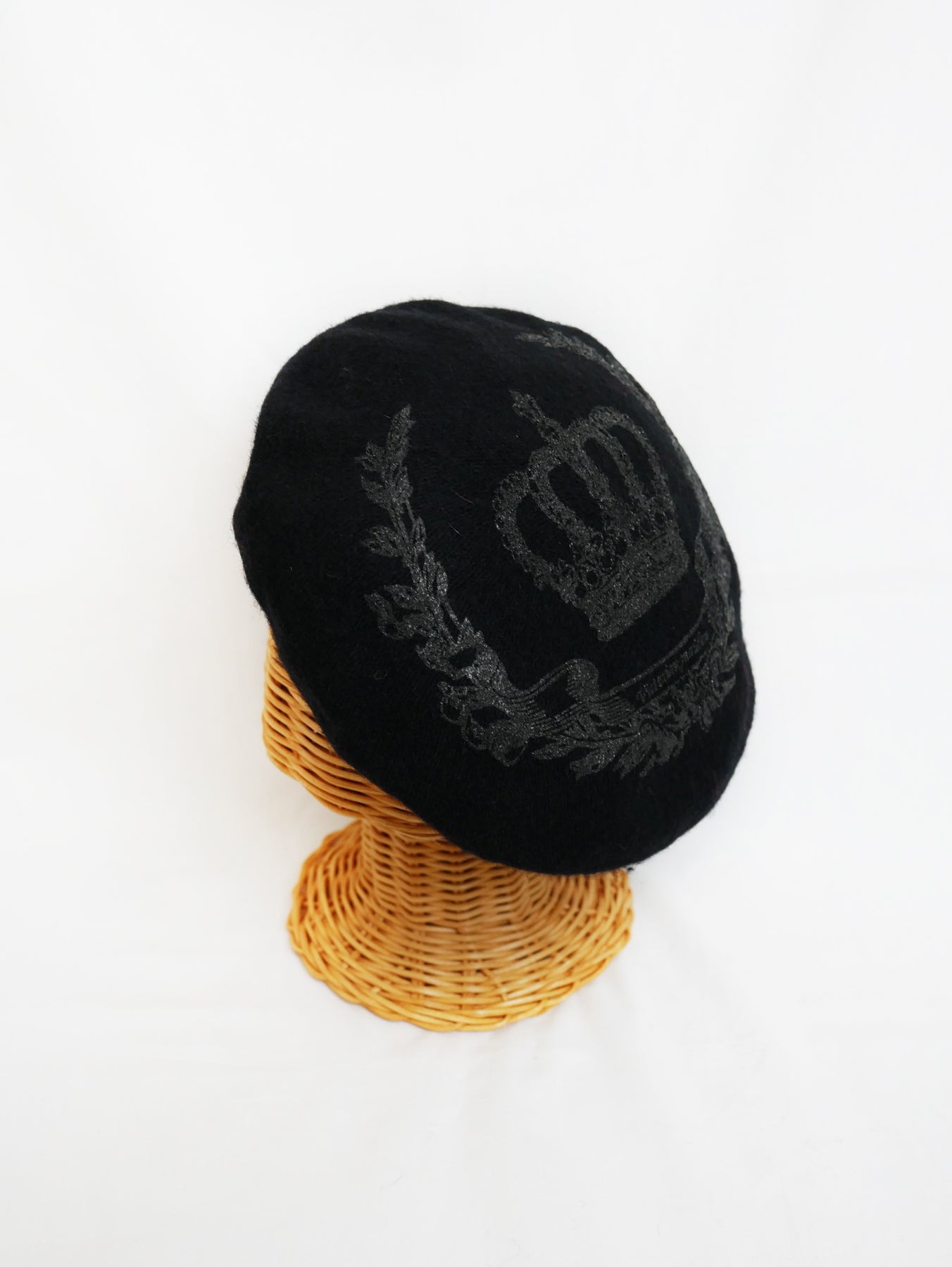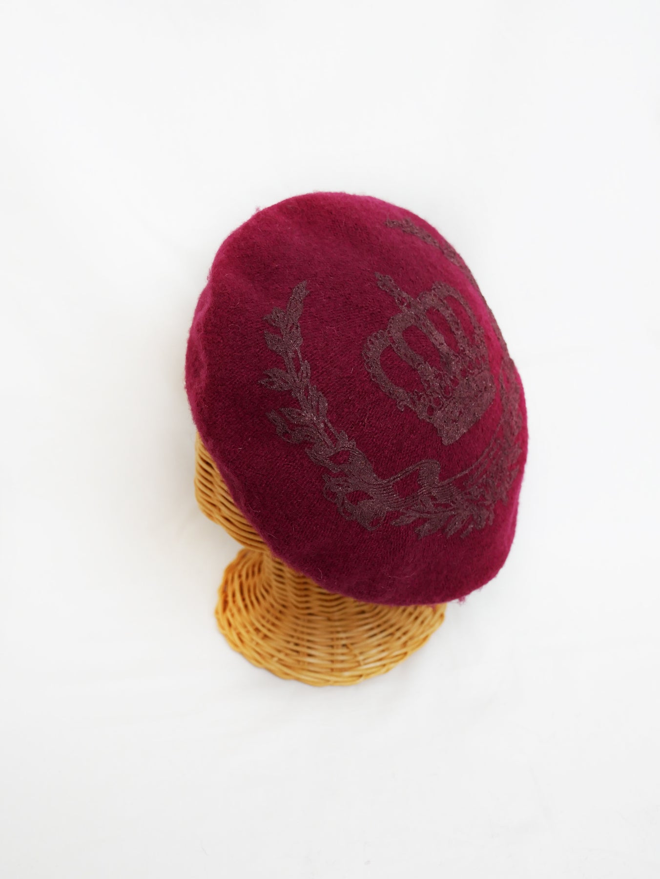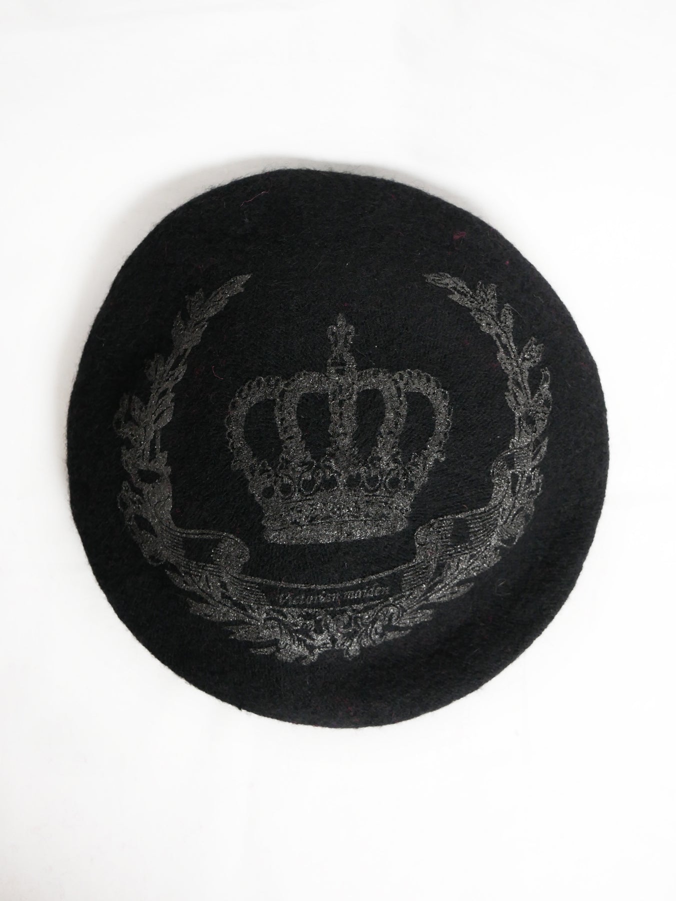 フェルト素材のベレー帽にパール顔料でロイヤルな王冠モチーフを施しました。