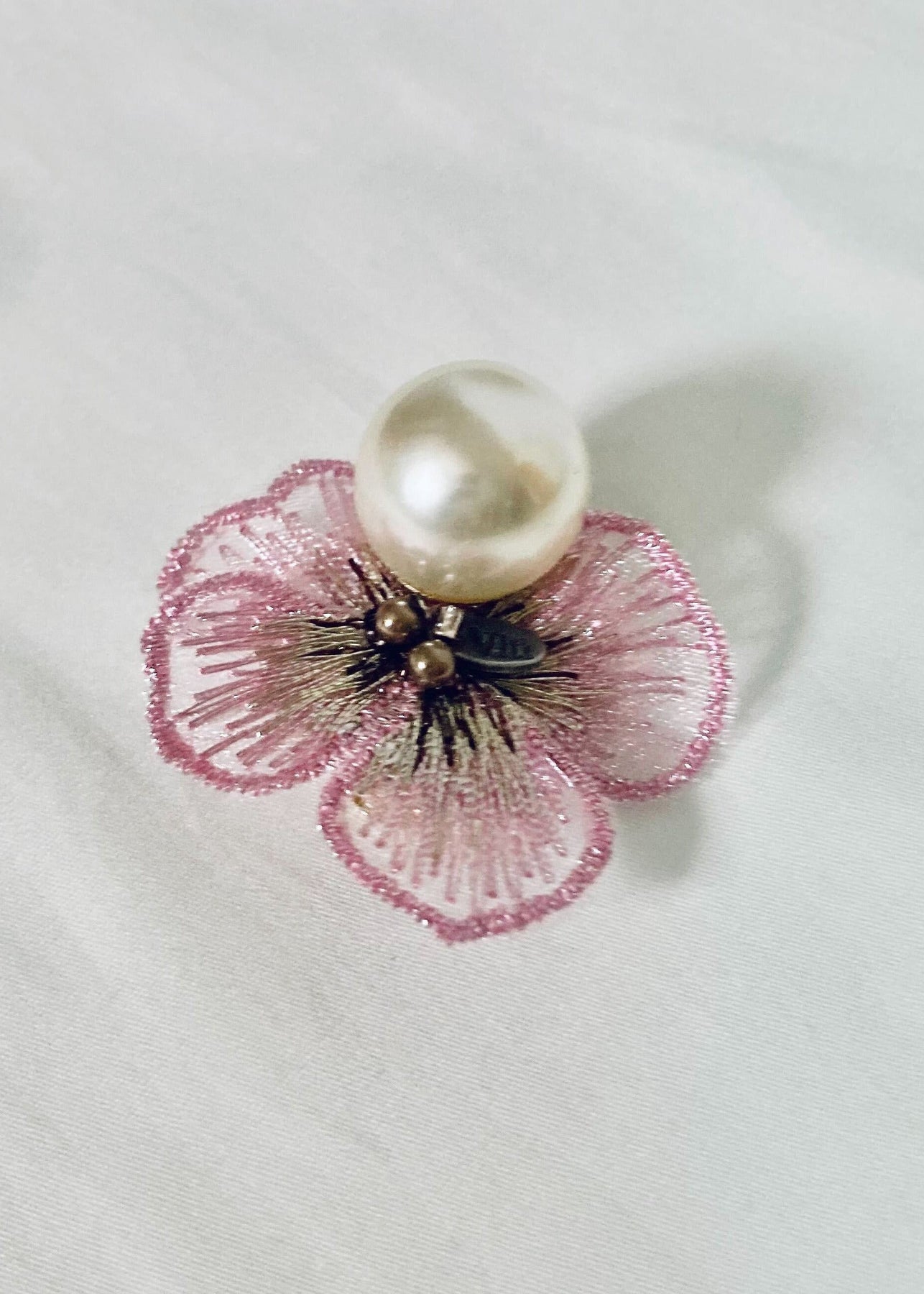 真っ直ぐな想いを詰め込んだパンジーの刺繍モチーフをあしらったヘアクリップ。