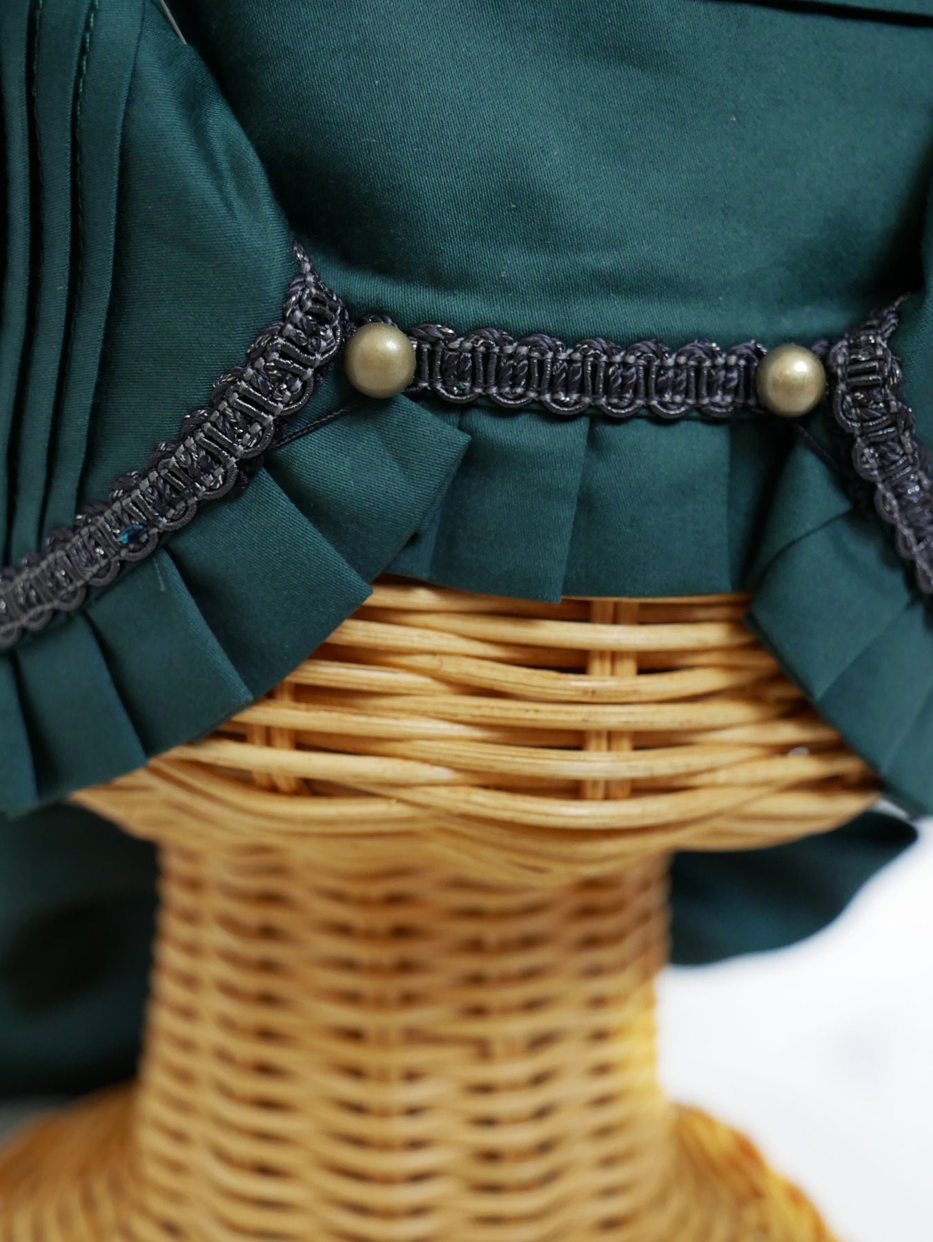 ブリムに施した繊細なフリルやピンタック、ノーブルサテンドレスにも施されている控えめに輝くラメブレードがアクセントに。