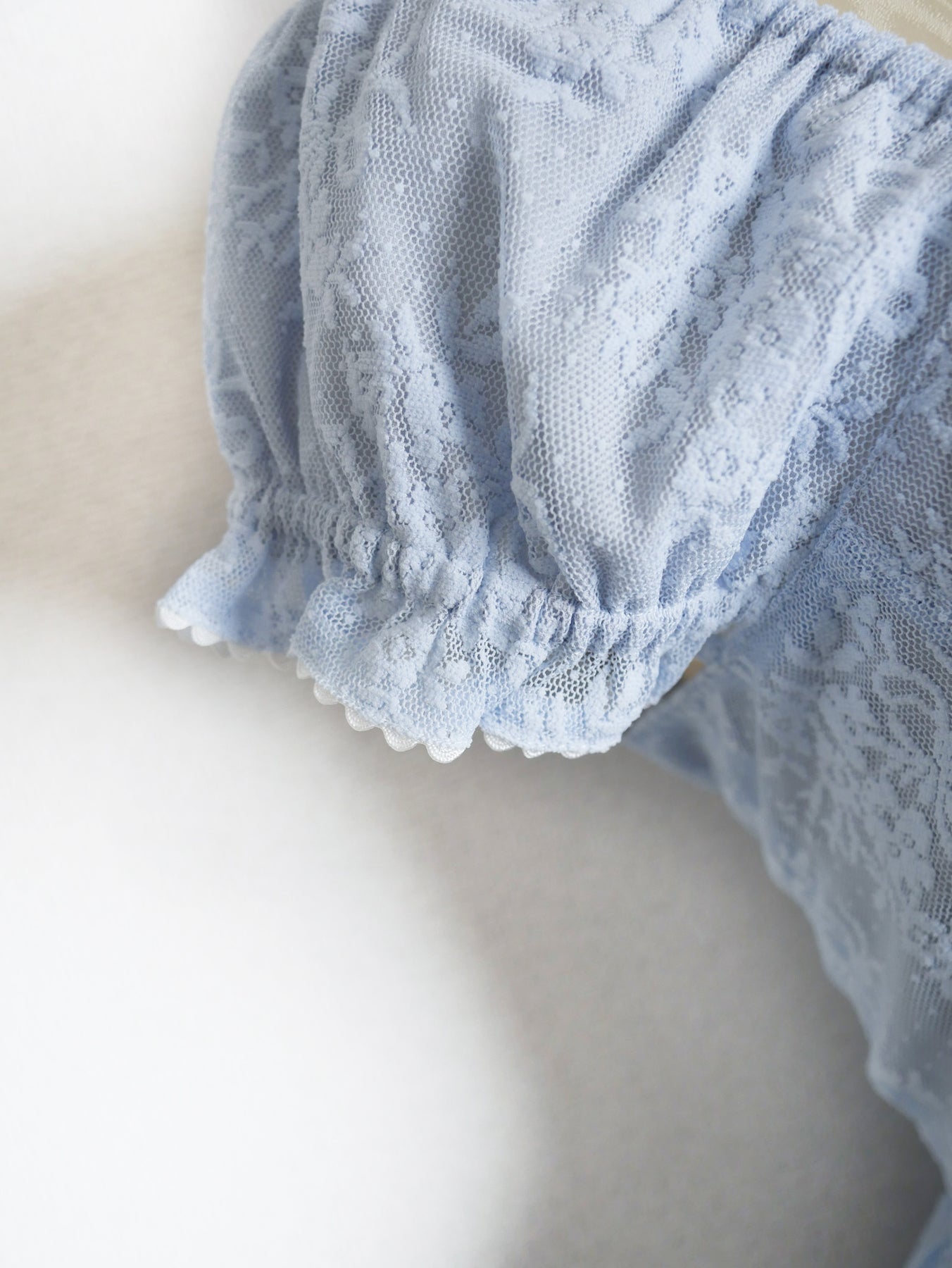 キャップスリーブの袖口のフリルは、さりげない透け感で乙女のような印象に。