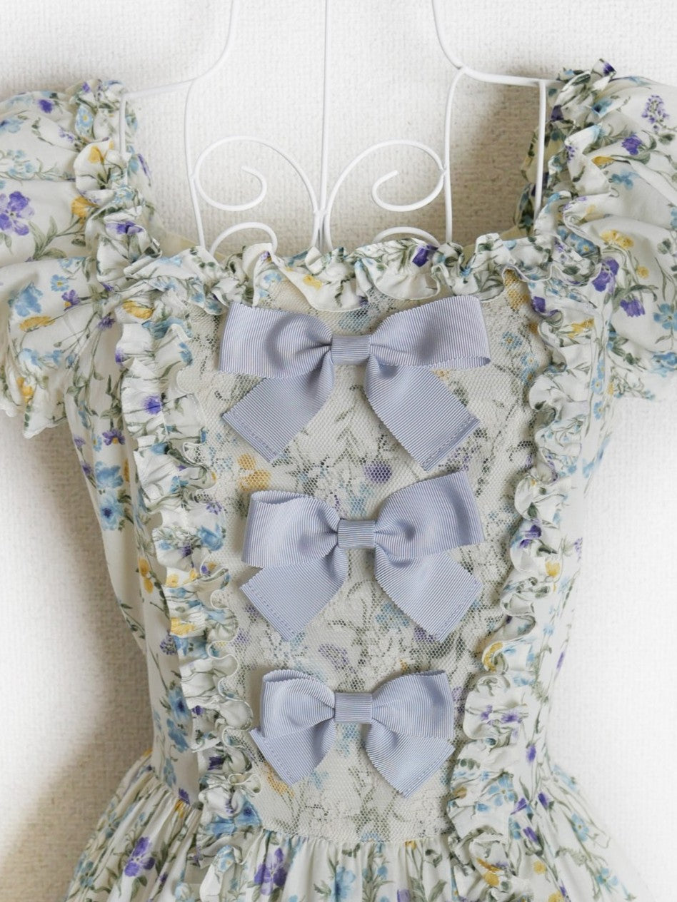 フロントにはグログランリボンを3つ配し、その下にはアメリアレーシー生地を贅沢に重ね、繊細な陰影が柔らかな立体感を描き出します。