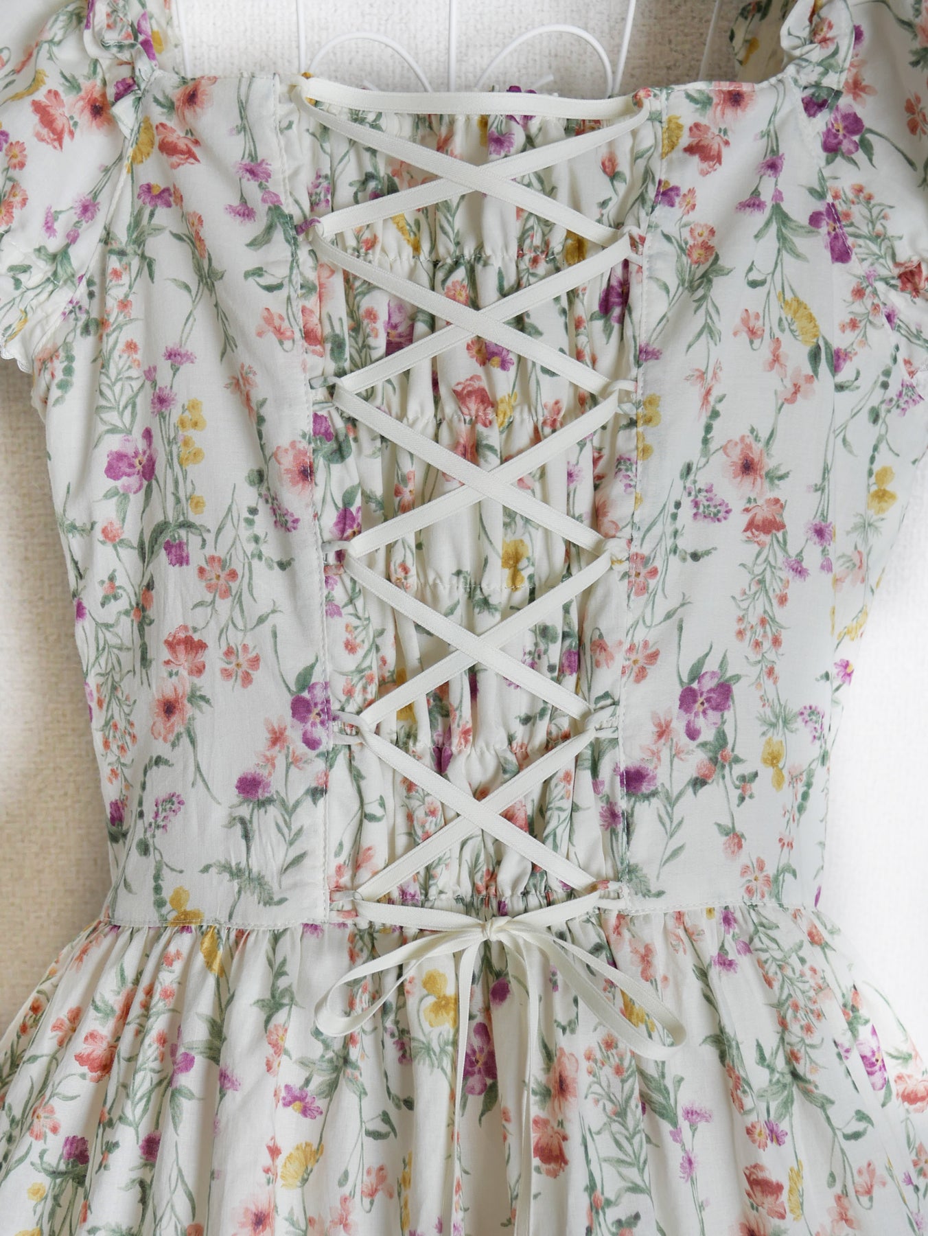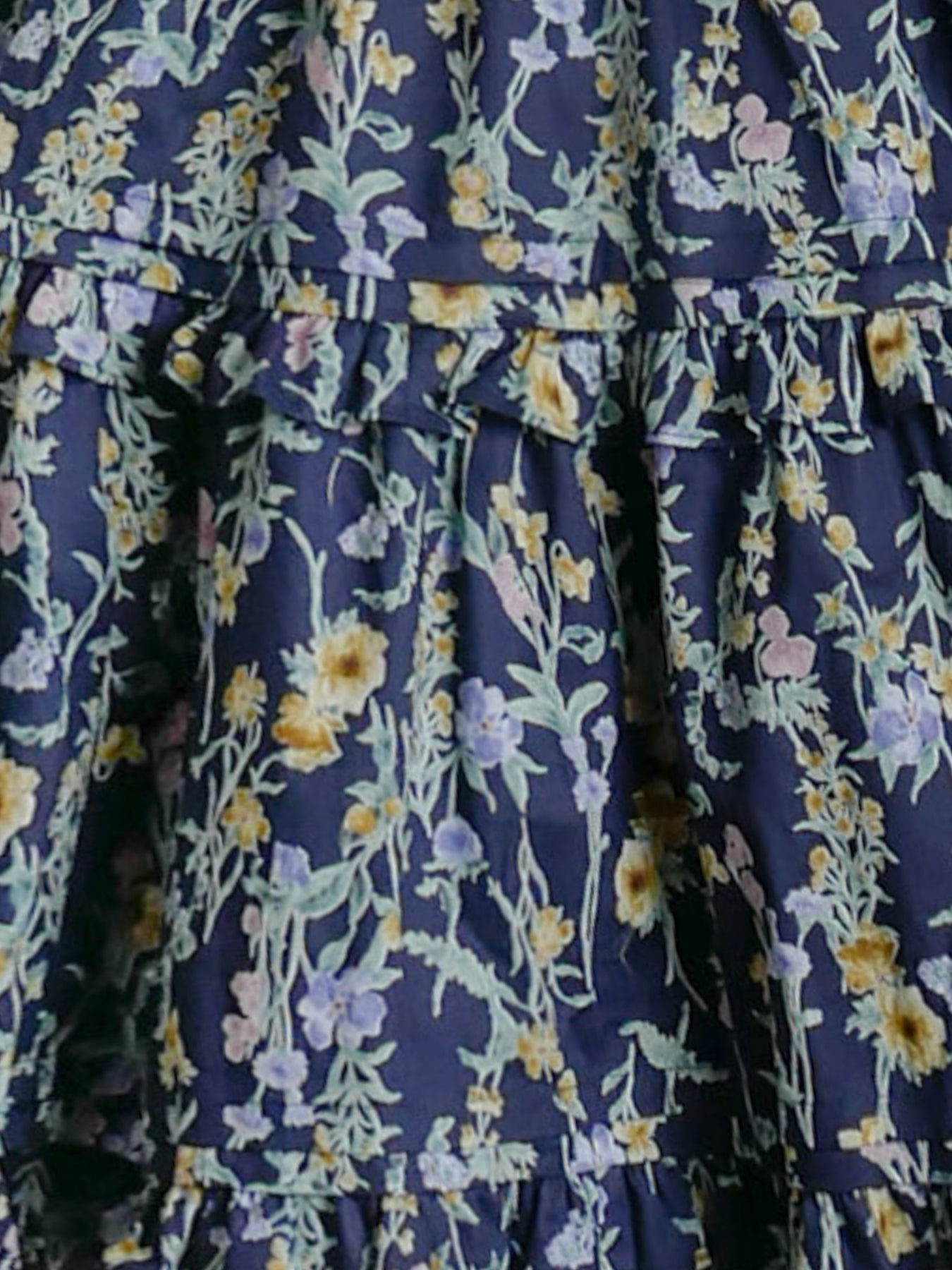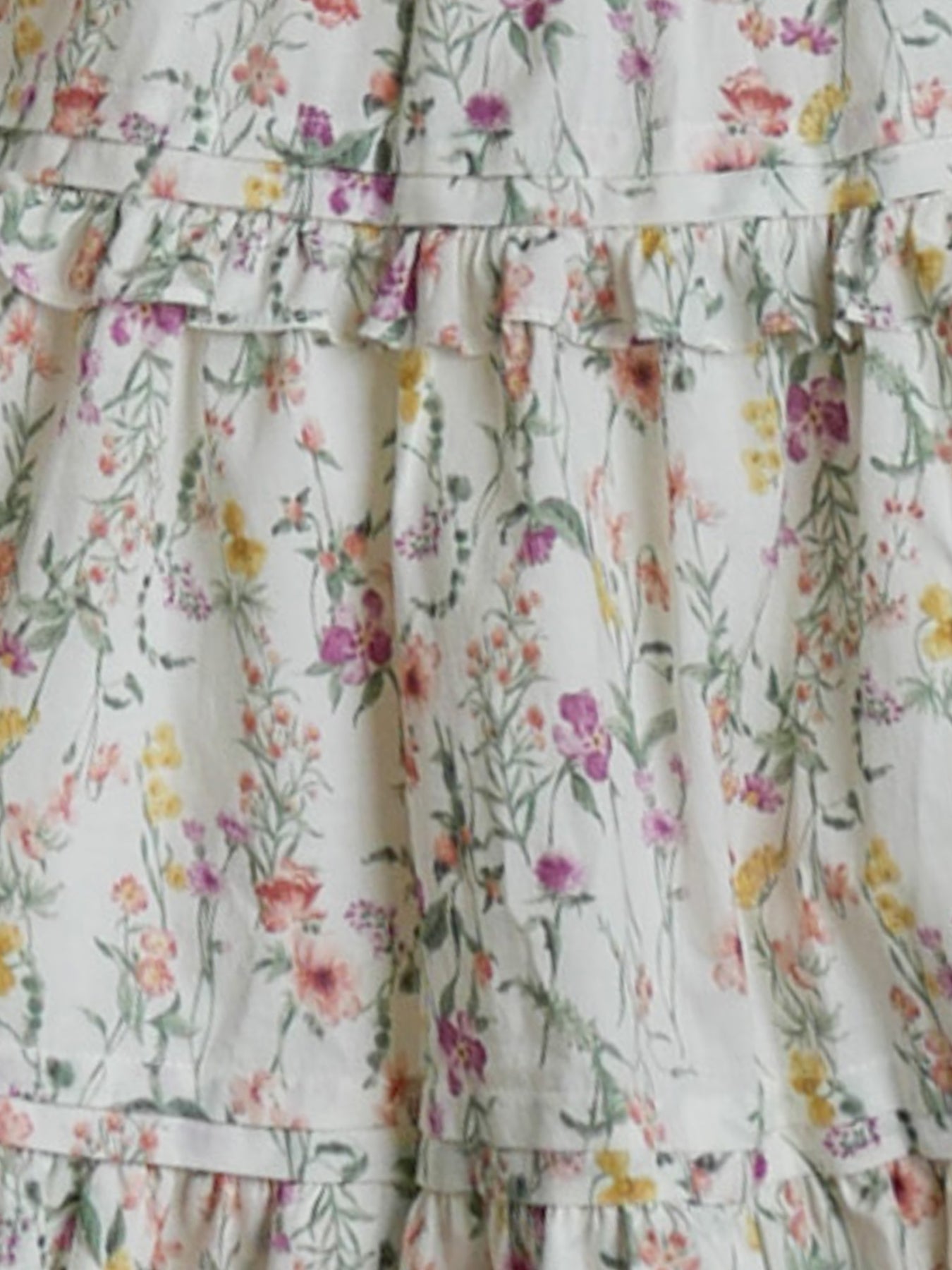 高密度の綿ローン生地を使用し、ティアードドレスならではのタックやフリルを3段に重ねた贅沢なティアードデザインのスカートは、軽やかにふんわりと広がる上品な動きを生み出します。