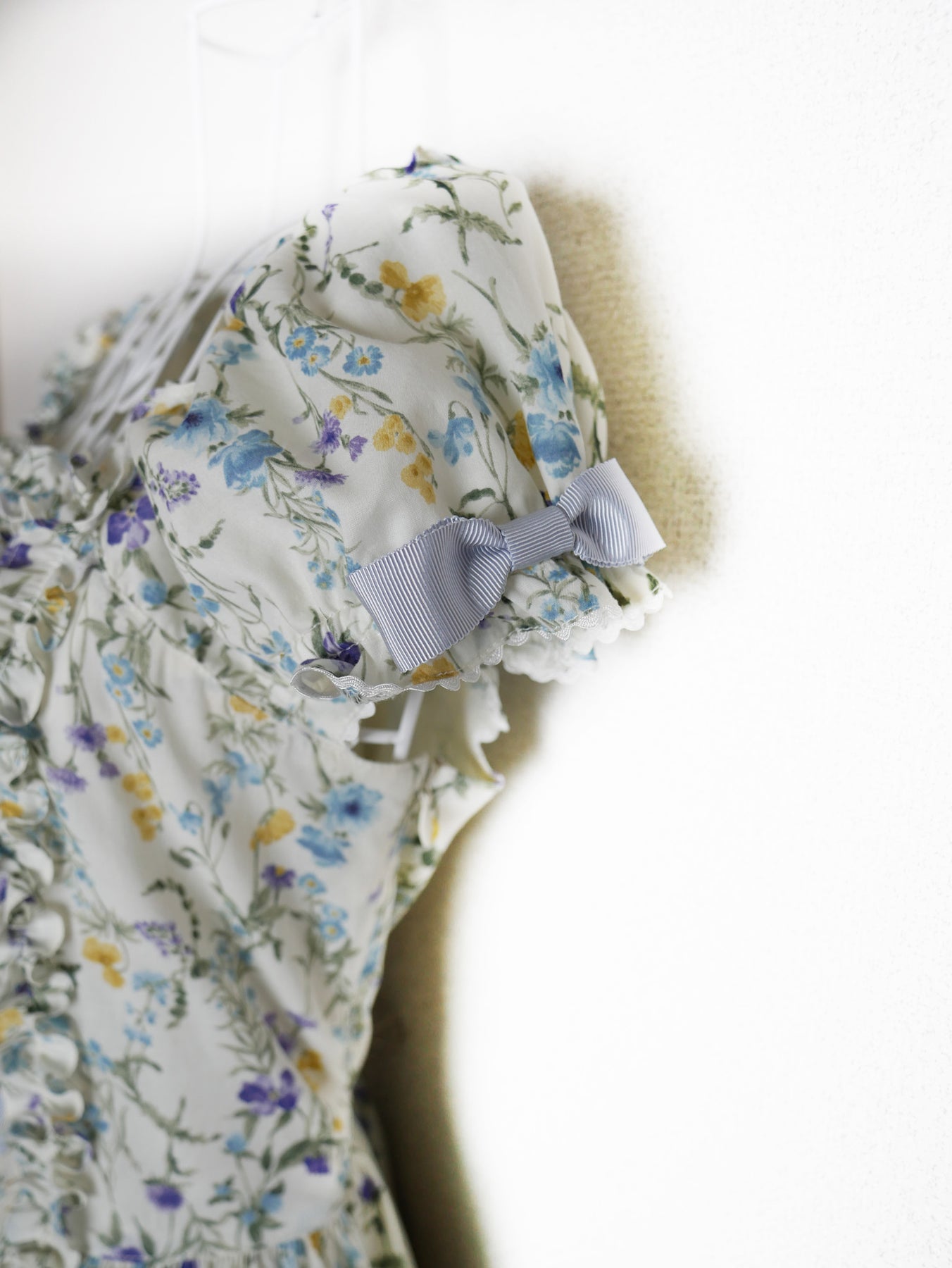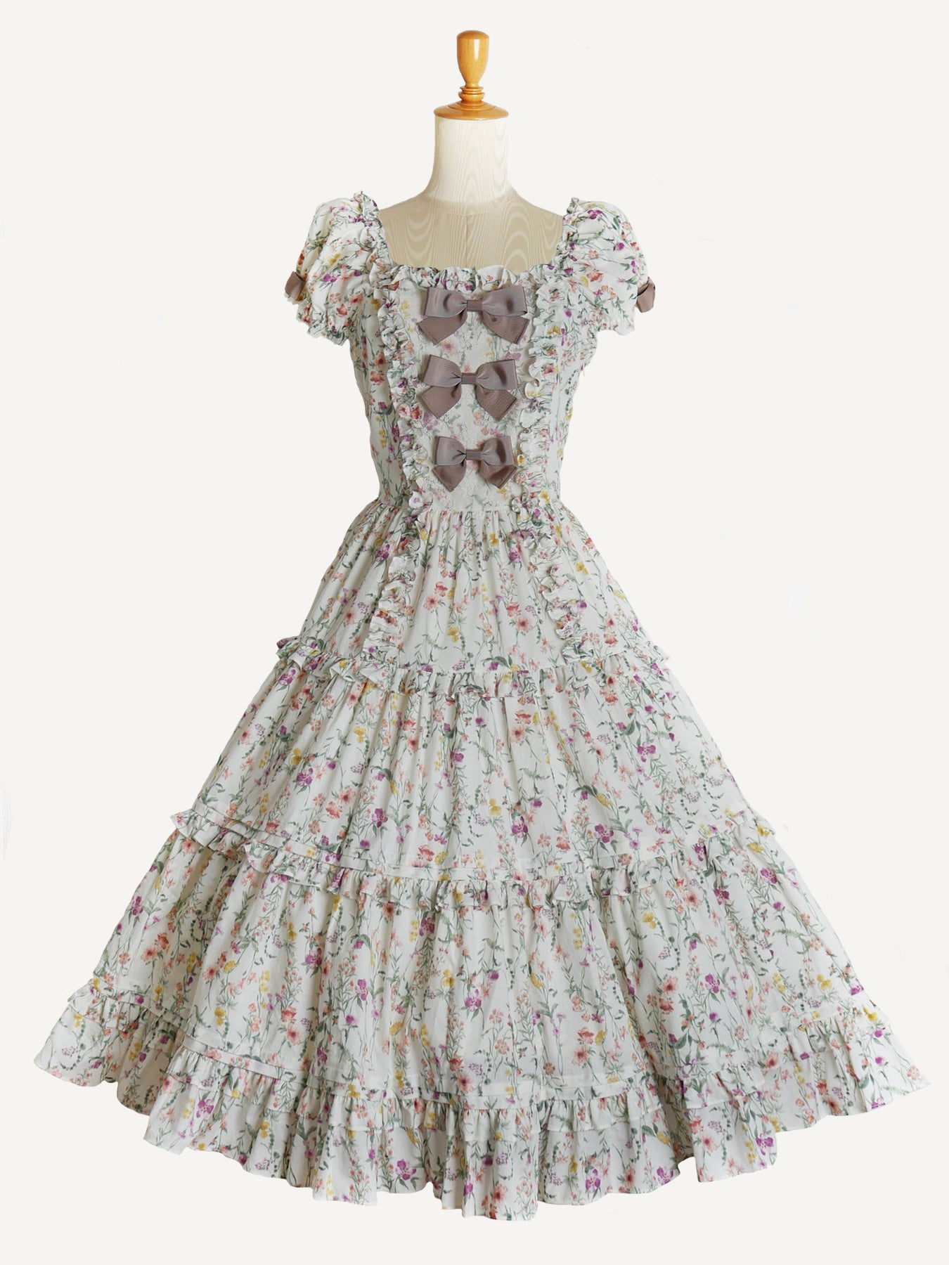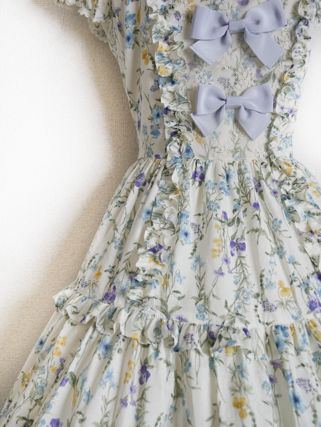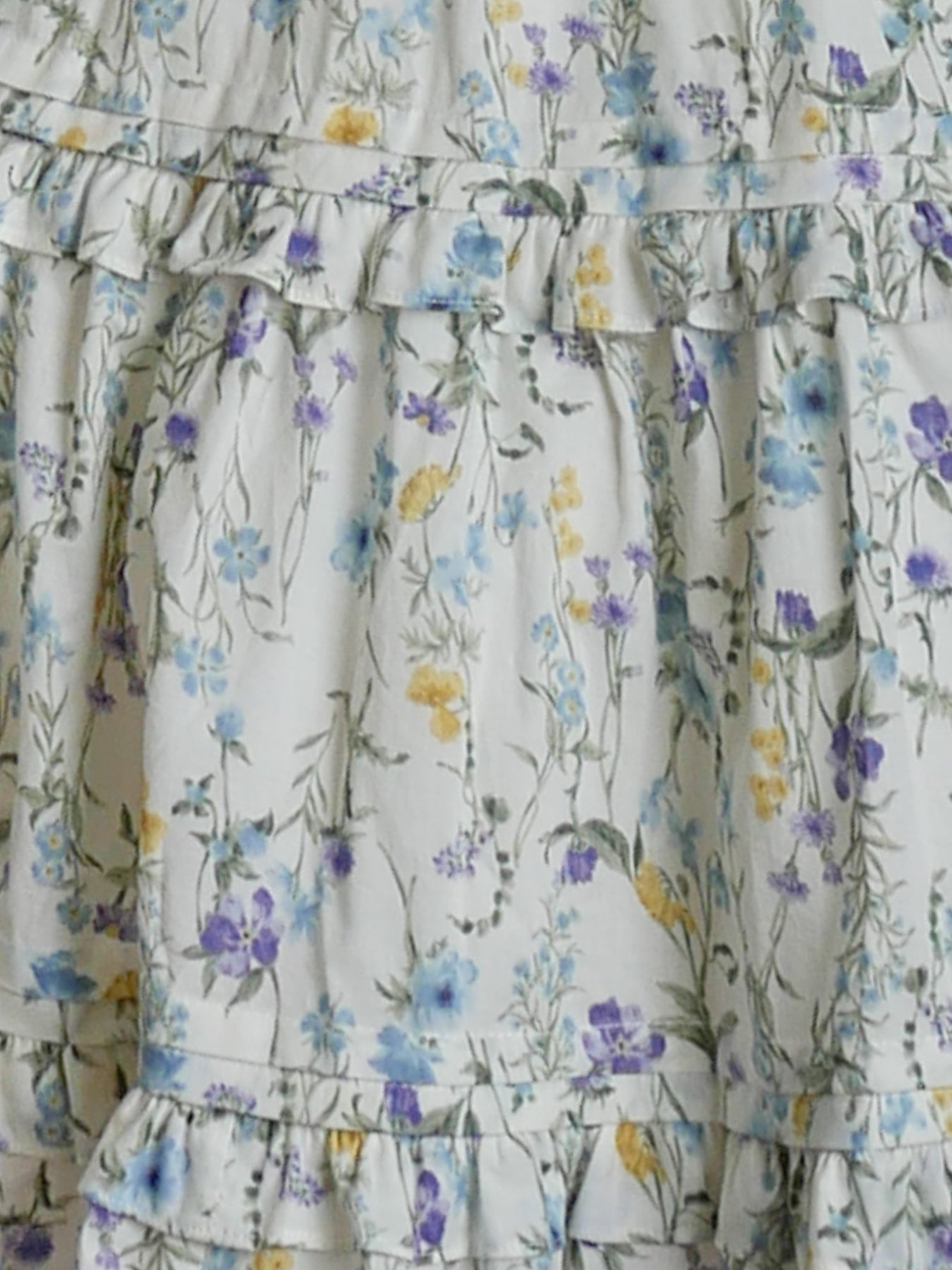 高密度の綿ローン生地を使用し、ティアードドレスならではのタックやフリルを3段に重ねた贅沢なティアードデザインのスカートは、軽やかにふんわりと広がる上品な動きを生み出します。