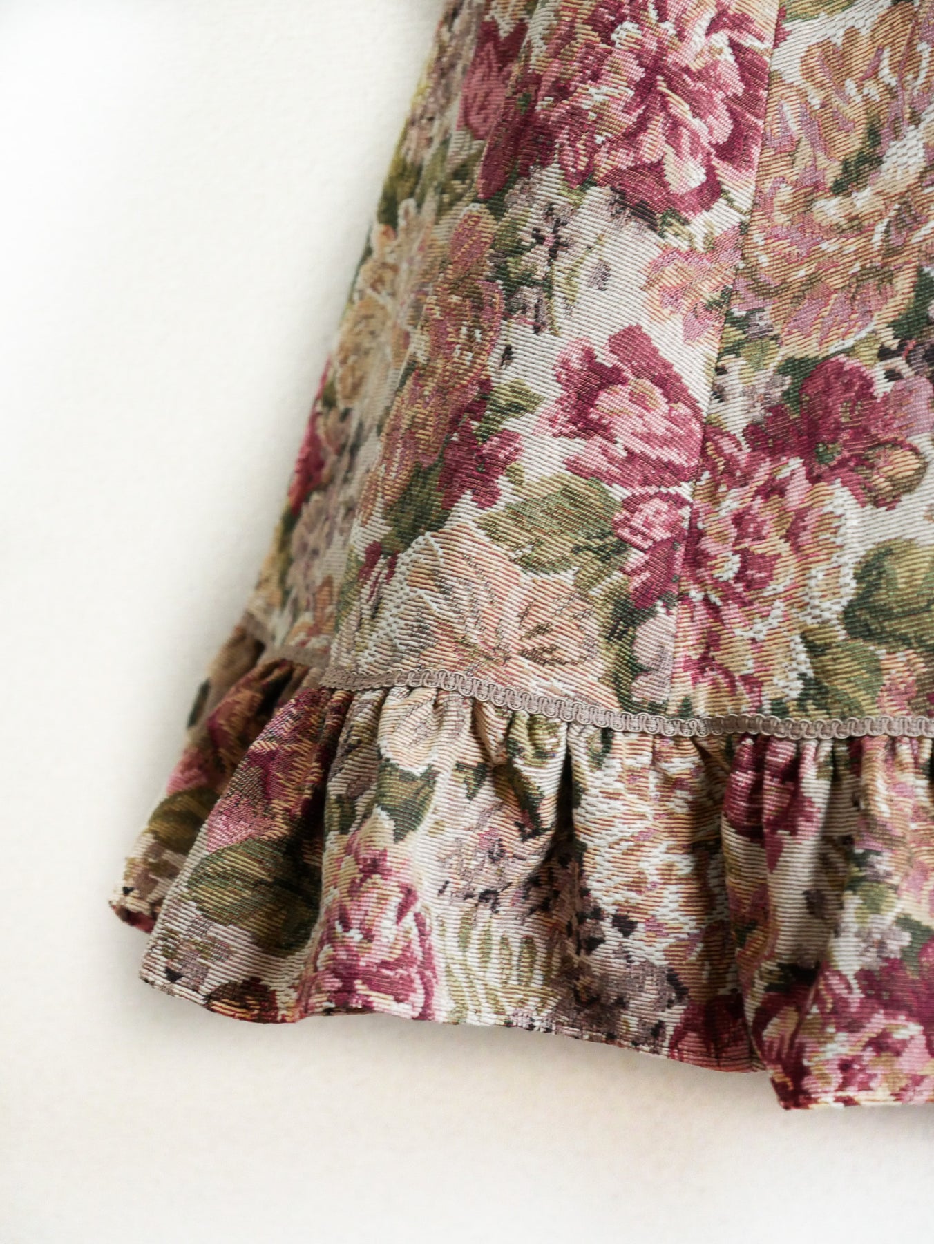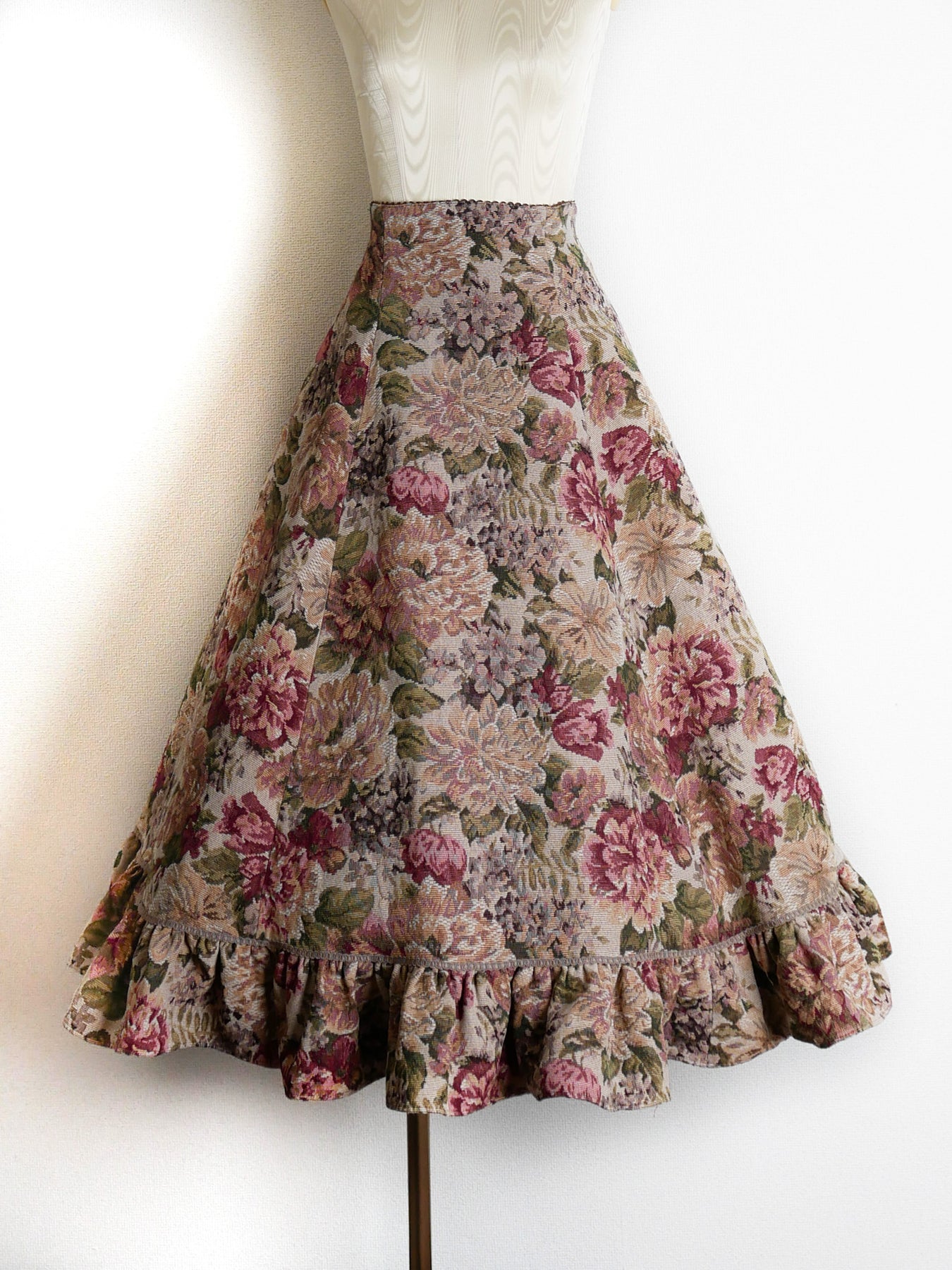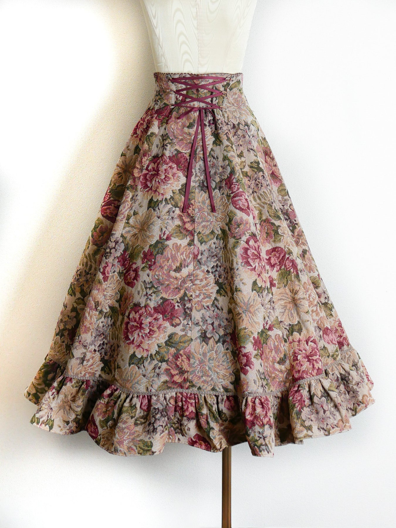 高級感溢れる薔薇ゴブランの生地を贅沢にあしらったハイウエストスカート。