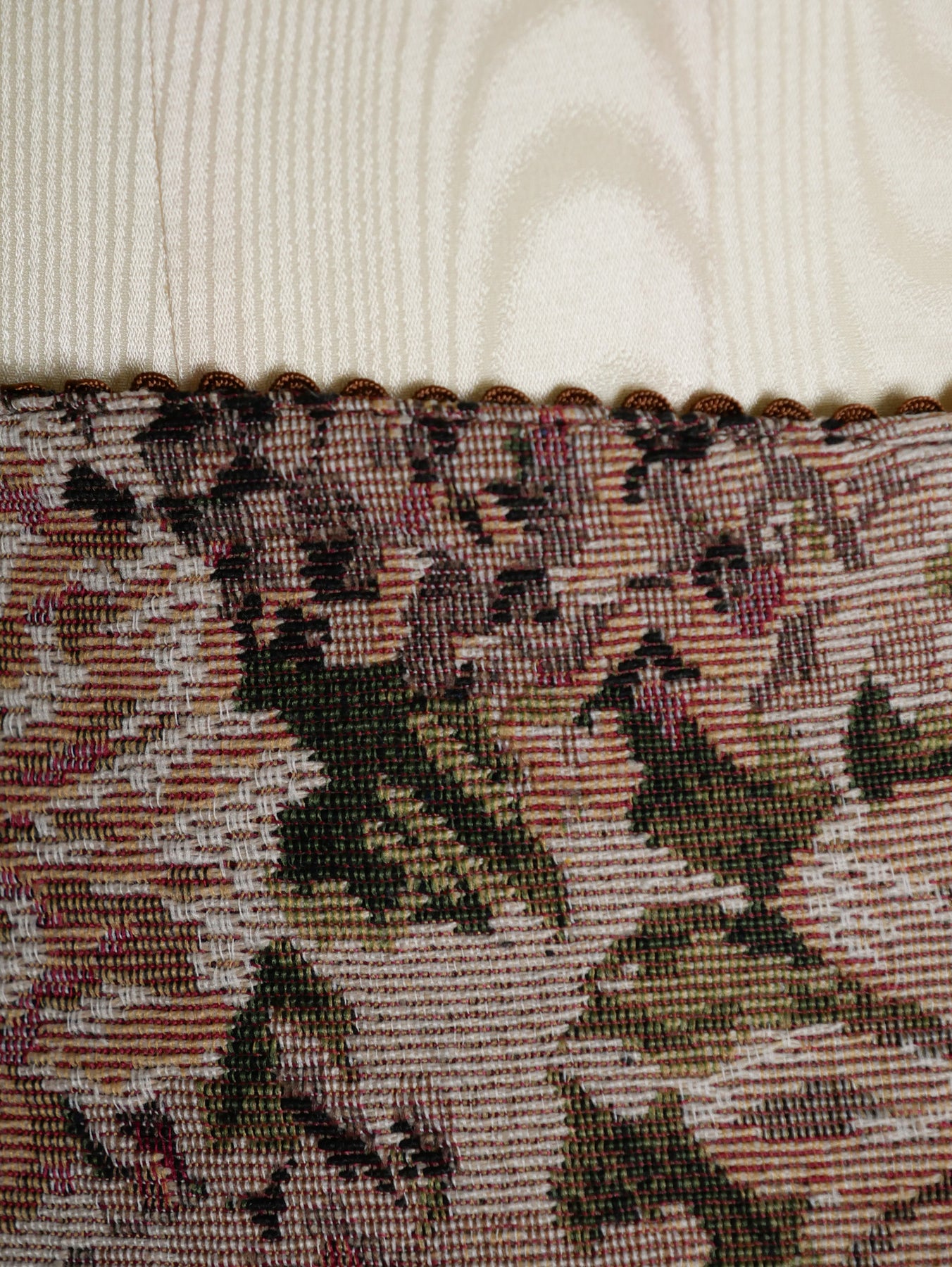 ゴブラン織りは縦横に複数の色糸を幾重にも組み合わせて織りあげられた絵画のように美しく、15世紀の王室御用達家具としても用いられ重厚感のあるテキスタイルとして古くから愛されてきました。
