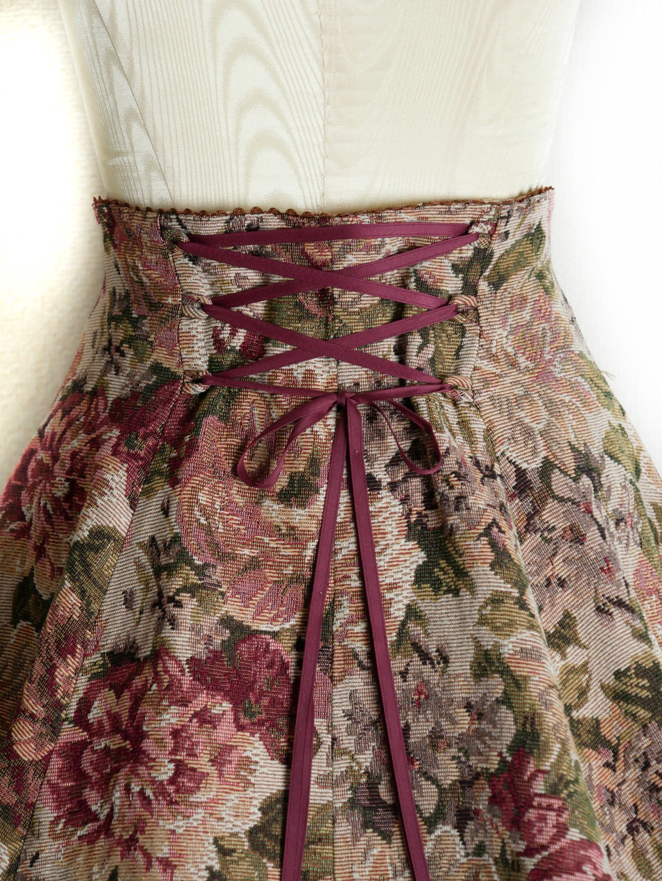 薔薇ゴブランタペストリーハイウエストスカート(ボルドー系)
