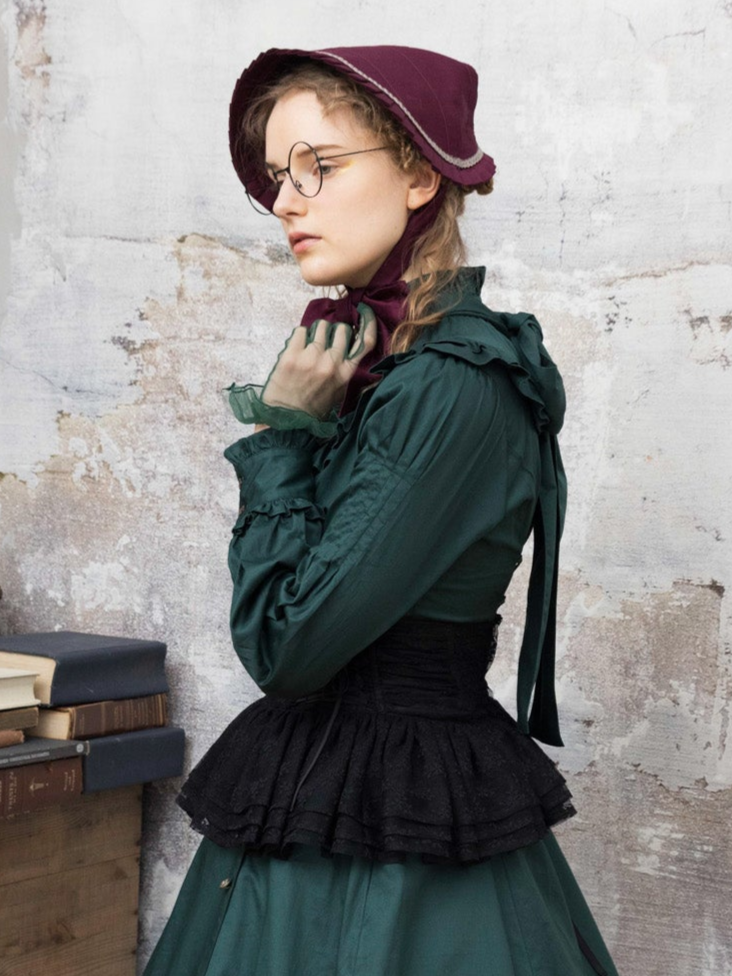 サイドの編み上げリボンにフリルをあしらったコルセットをお届け。