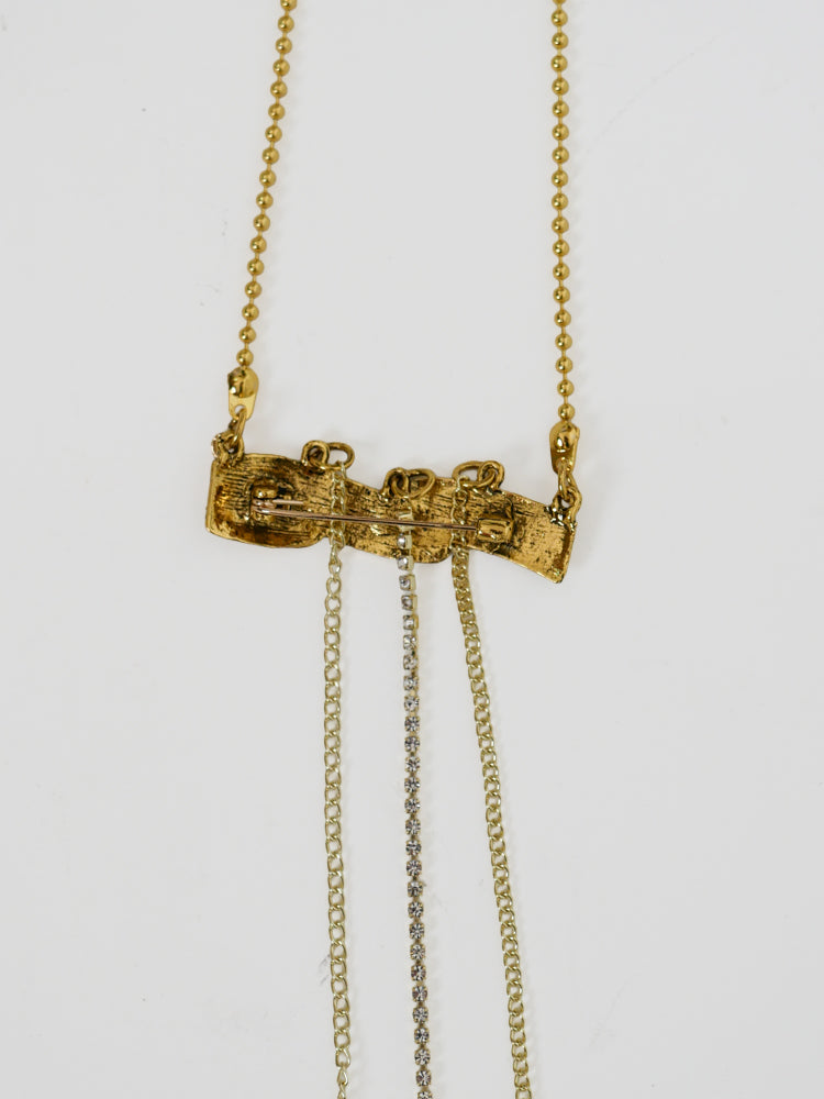 ハートの上部が開閉し、ロングチェーンによりポシェットのように斜めがけしたり、2重巻きにしてネックレスとしてもお使いいただけます。