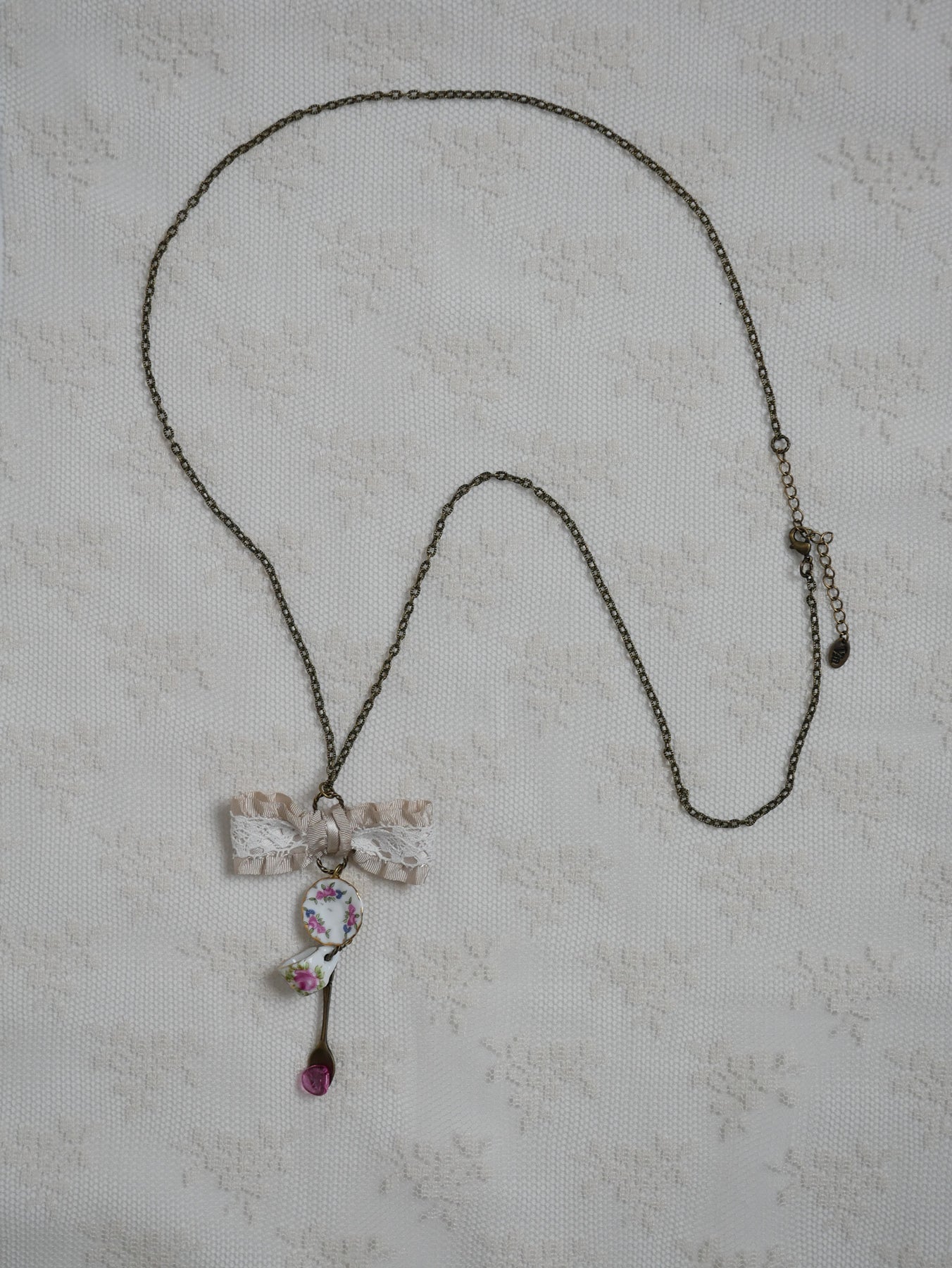 紅茶の豊かな香りが満ちるアフタヌーンティーのひとときをイメージした、ティーセットモチーフのネックレスです。