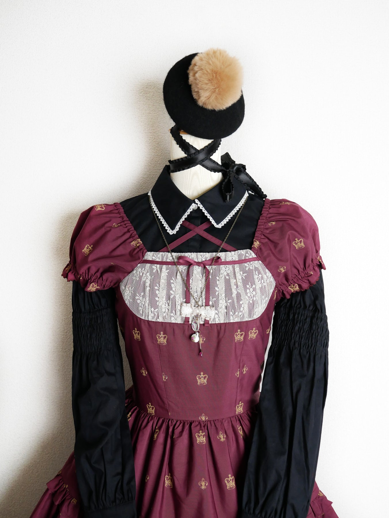 清楚な綿レースを重ねたアイボリーのフリルサテンリボンは、テーブルクロスのように品よく胸元を飾り、細部にまでこだわったデザインが、装いにさり気ない遊び心を添えます。